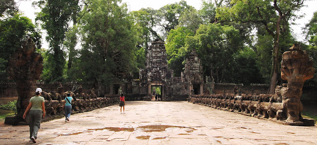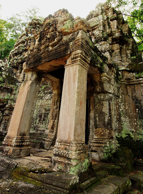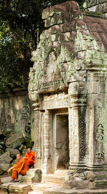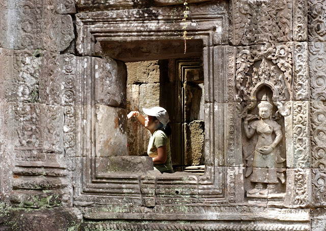 Of all the temples that we visited in Angkor, I particularly liked Preah Khan and Ta Prohm the best. Both temples were built in the 12th century by King Jayavarman VII, and have been left in their original conditions in which they were discovered. Until now, the temples have been left unrestored, with trees and vegetation growing among the ruins.