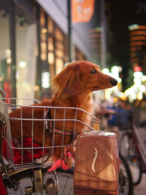 A dachshund waiting patiently while its owner was on an errand.