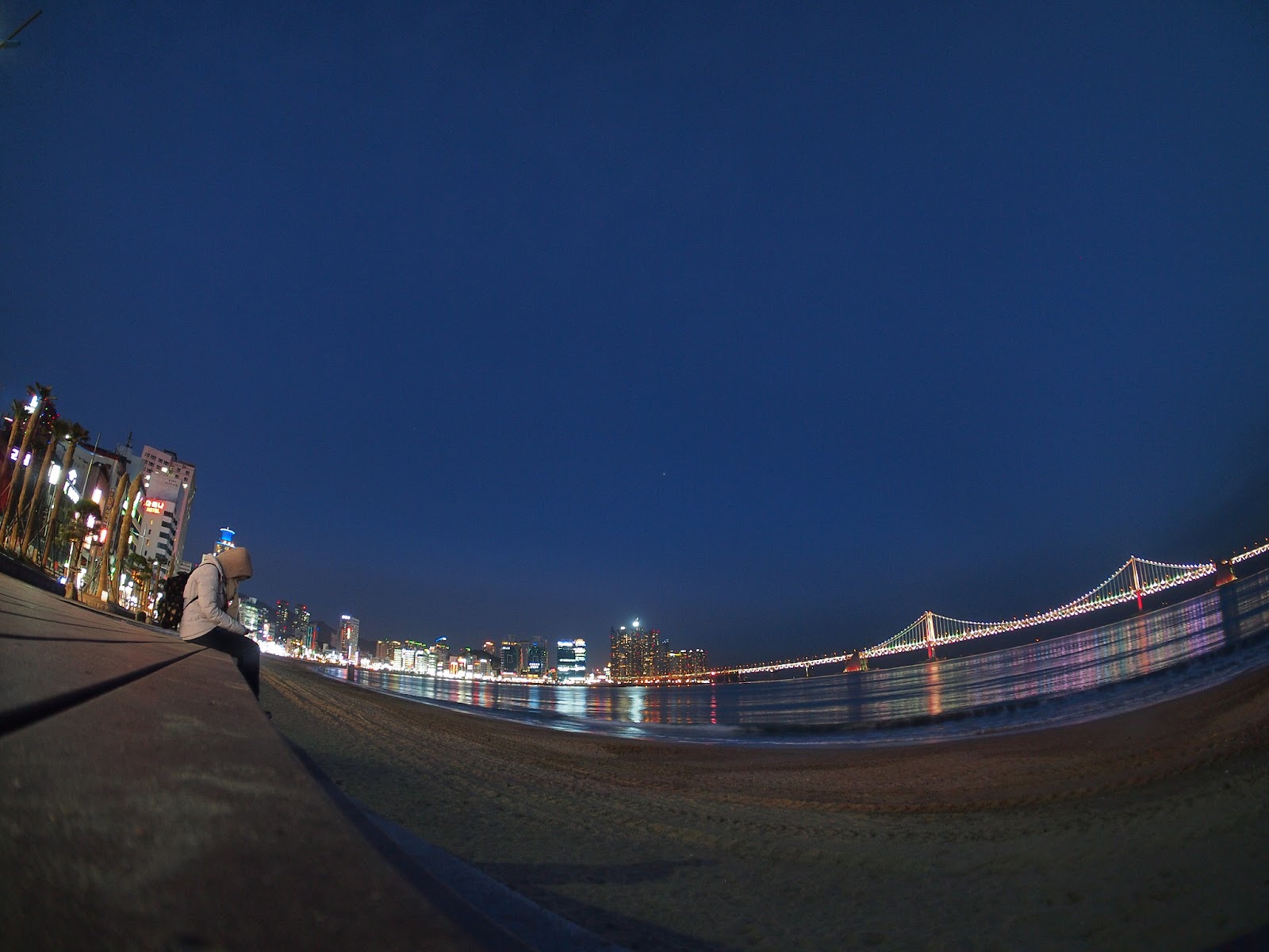 Gwangalli Beach is another popular beach in Busan. From the beach front, we could see Gwangan Bridge, which also known as The Diamond Bridge.