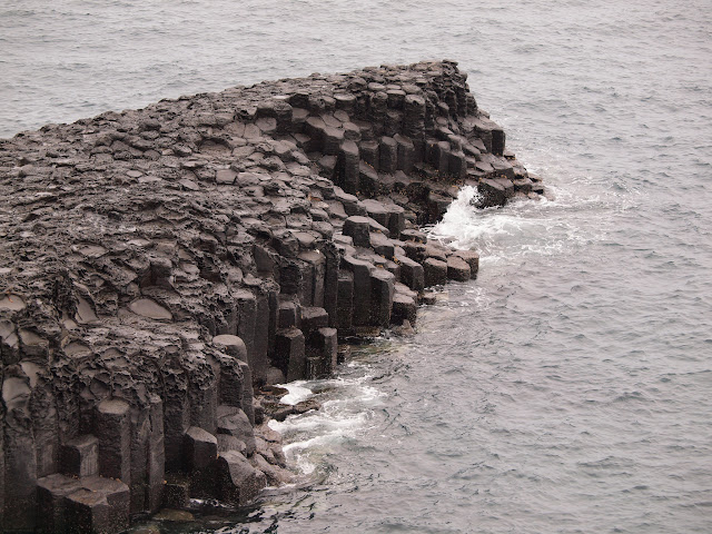 The cliff has volcanic rocks that formed when molten lava solidified when contact with the cold seawater.