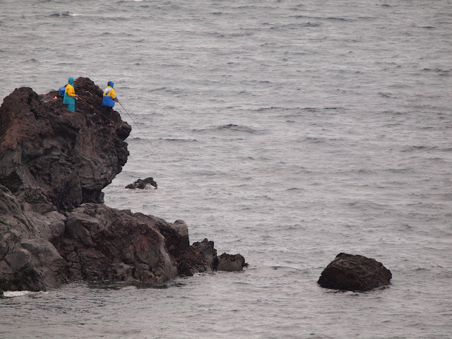 Spotted two anglers by the edge.